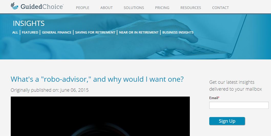 As you can see below, GuidedChoice, a retirement robo-advisor, provides value to a customer in the beginning stage of their buyer journey, due to the fact that the blog post is targeting an individual that knows nothing about robo-advisors, and seeks to educate them more about the profession.